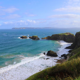 Es geht nach Nordirland! Die Grenzüberfahrt hätte ich mir spektakulärer vorgestellt - eigentlich merkt man gar nichts davon. Rein durch die Tatsache, dass man hier mit Pfund und nicht mehr mit Euro bezahlt, zeigt mir, dass ich mein Ziel erreicht habe. Die Straßen sind besser, aber die Menschen leider etwas weniger freundlich und vom Essen möchte ich gar nicht erst anfangen. Warum nur nach Norden? - Da ich Game of Thrones nicht kenne, komme ich nicht wegen der Drehorte hierher, sondern wegen der atemberaubenden Küstenstraße, die Causeway Coastal Road. Die Erkundung geht von links nach rechts. Der Beginn macht der Mussenden Tempel und Dunluce Castle, dazwischen natürlich immer ein kurzer Stopp am Strand. Weiter geht´s mit dem Giant´s Causeway, einem Highlight der Route. 400 000 sechseckige Basaltsäulen, die als Weltkulturerbe gelten bilden eine skurrile Landschaft. Wandert man auf der roten Route, so entkommt man zunächst den Massen und hat zudem wunderschöne Aussichtspunkte. Gleich am darauffolgenden Tag verfolgt mich diese "Game of Thrones"-Sache wieder - The Dark Hedge, die Allee mit mystischer Stimmung, war wieder einmal ein Drehort der Serie. Weiter zur Carrick-a-Rope Bridge! Die Sonne drückt durch den Wolken hervor und die kleine Wanderung zur Hängebrücke ist leicht zu meistern, obwohl die Wandertafel das letzte Stück als "schwierig" ausschreibt. Die Hängebrücke verbindet das Festland mit einer winzigen Felseninsel. Allerdings findet man dort wieder jeder Menge Touris ;) Von ganz oben geht es über Belfast langsam wieder nach unten. Bald heißt es leider wieder Abschied nehmen...