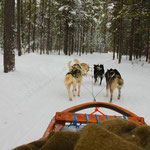 Leider müssen wir unser Blockhüttchen in der Wildnis verlassen und fahren 150 km südlicher. Dann der Schock: Temperaturunterschied von 36 Grad. Hier hat es nur -1 Grad. Es ist wahnsinnig warm. Ein Tag mit Huskys unterwegs! Zugegeben hatte ich ganz schön Bammel, ein Husky-Gespann zu lenken. Nach kurzer Einführung, klang das alles sehr kompliziert. Jedoch klappte alles wunderbar. Man gleitet über sanfte Hügel und um scharfe Kurven. Genial, wie in einem Jack London Roman. Ein schöner Urlaub geht zu Ende... Wir haben viel über die Samí-Kultur gelernt, die Polarlichter haben sich von ihrer besten Seite gezeigt und ich habe den Winter und den vielen Schnee lieben gelernt.