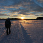 Ich bin ein absoluter Winter-Muffel, aber so langsam kann ich mich mit dem Winter und dem Schnee immer mehr anfreunden. Kein Wunder bei dieser tollen Winterlandschaft.  Zunächst steht das Eisfischen, dann das Motorschlittenfahren auf dem Programm. Alles erdenkliche wird ausprobiert. Das Schneeschuhwandern hätte ich mir nicht so anstrengend vorgestellt. Eine neue Leidenschaft ist hier erwacht: Ski-Langlauf!