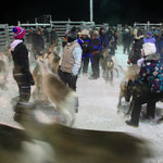 Die nächsten Tagen wohnen wir in einem kleinen Häuschen in Utsjoki, welches von einer traditionellen Rentierzüchterfamilie vermietet wird. Bei Anne, Petteri, Henry und Erik fühlen wir uns sofort wohl. Anne zaubert jeden Tag ein wundervolles Essen für uns. Henry und Erik nehmen uns überall mit und erklären uns alles ganz genau. Wie es der Zufall so will, ist in diesen Tagen die sogenannte Rentierscheide. Hier treffen sich alle Rentierzüchter der Gegend, treiben ihr Vieh ein und entscheiden, welches Tier zum Schlachter muss und welches wieder in die Freiheit darf. Die Einwohner hier sind sehr eigen, was das Zuschauen betrifft. Henry telefoniert herum und erst sieht es so aus, als ob wir nicht mitdürfen, doch dann erhalten wir eine Erlaubnis.