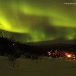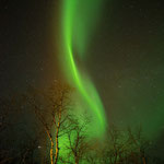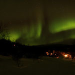 Aurora borealis - eine faszinierende Show der Sonnenwinde! Meine größte Angst war es, nach Lappland, in die Kälte und Dunkelheit zu reisen und dort keine Nordlichter zu erblicken. Zugegeben die Reise hätte sich auch ohne Nordlichter gelohnt, jedoch enttäuscht wäre ich dennoch gewesen. Aber im hohen Norden Skandinaviens waren sie dann zu sehen. An der arktischen Grenze am 10.02.2013 kurz vor Mitternacht sind die Polarlichter am Himmel zu sehen. Aufgenommen mit meinem Weitwinkelobjektiv Canon 24mm 1:1,4 L II USM. Mit fast offener Blende, 25 Sekunden Belichtungszeit, 800 ISO. Danke für´s Daumendrücken. In bester Formation  tanzten die Lichter am Himmel. Ein atemberaubender Anblick! In Termokleindung gehüllt, verbrachte ich Stunden draußen bei klirrender Kälte, um das Schauspiel mit der Kamera einzufangen.