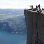 In der Nähe von Stavanger, am Lysefjord liegt das schwindelerregende Hochplateau - der Norwegenklassiker schlechthin - der Preikestolen. Früh morgens wandern wir los. Für die sechs Kilometer Aufstieg krackseln wir doch fast zwei Stunden. Irgendwie sind wir heute nicht so gut gelaunt, denn das Wetter spielt nicht mit. Der Nebel wird immer dichter. Nicht nur einmal stellt sich die Frage, ob der Aufstieg Sinn macht? Was bringt das Ganze, wenn wir von oben keine Sicht auf den Fjord haben? Dennoch stapfen wir weiter ... Und werden mehr als belohnt, als plötzlich das Wetter aufklart und ein wahnsinniger Blick freigibt. Alles richtig gemacht :)