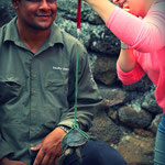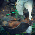 Klassensätzen Deutscharbeiten an meinem Schreibtisch. Mit Schrecken denke ich daran zurück. Das muss sich ändern, wenn ich zurück bin! Die Arbeit mit den Schildkröten bringt eine schöne Abwechslung. Es gilt, die großen sowie die kleinen Tierchen zu messen und zu wiegen. Zudem öffnen wir ein Nest