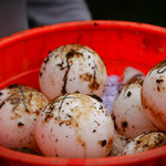 und bringen die acht Tischtennisball-ähnlichen Eier in den Brutkasten. Jedoch gehört dies zu den seltenen Beschäftigungen hier. Schon geht es mit Anstrengung weiter. Mein Körper wird müder und