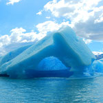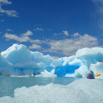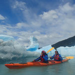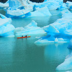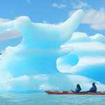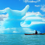 Eis-Riesen so dicht vorbei zu paddeln, doch schon nach kurzer Zeit fühle ich mich absolut frei und dann staune ich nur noch über die verschiedenen Blautöne der Eisberge. Nach drei Stunden