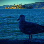 Gestern war Valentinstag und die Stadt spielte verrückt. Die Market-Street war voll von Blumenhändler. Überall sieht man Leute mit Blumen, kleinen Päckchen und roten Herzluftballons. Ach, wie kitschig! Ich klinge mich aus und nehme den ich den Marsch zum Pier 39 und zum Fisherman´s Wharf auf mich. Dabei kam ich durch das Ferry Building, vorbei am Farmer´s Markert. Frische Köstlichkeiten überall wohin man schaut ... Weiter hat man einen guten Blick auf Alcatraz, das ehemalige Gefängnis. San Francisco könnte gut auf den Pier 39 und auf Fisherman´s Wharf verzichten, da ist viel zu viel Touri-Trubel. Auch der Blick auf die Seelöwen entschädigt nicht, wenn man zuvor auf den Galapagos-Inseln war. Gegen Abend gab es den sogenannten "Grand San Francisco Valentins day pillow fight" - diese riesen Kissenschlacht fand auf dem Justin Herman Plaza statt. Ach Kindheitserinnerungen werden wach, was für ein großartiger Spaß! Und was für verrückte Leute hier doch rum laufen - den Kerl mit Taucherbrille und Selfi-Stick musste ich einfach fotografieren. Auf dem nach Hauseweg sah man lauter gutgekleidete Pärchen, die schick zum Essen gehen. Ach, zum ersten Mal fühle ich mich ein bisschen einsam.