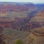 Der dritte Tage soll mein Highlight-Tag werden. Es geht zum Grand Canyon. Man konnte wählen, ob man den South- oder den West-Rim besichtigt. Lange überlegte ich... In westlicher Richtung wäre der Skywalk.  Seit 2007 bietet der Skywalk Besuchern die Möglichkeit, auf einer stählernen Brücke in Form eines Hufeisens mit gläsernem Boden und gläsernen Geländern in schwindelerregender Höhe von 1200 m über dem Abgrund des Grand Canyons zu schweben. Jedoch darf man dort keine Fotokamera mitnehmen und die Bilder vom South Rim begeistern mich - so ist die Entscheidung getroffen! Damit bin ich aber allein unter Chinesen! Ich werde in einen anderen Bus mit anderem Reiseführer gesteckt. Alles wird auf chinesisch erklärt - hm, ok! Obwohl der Reiseführer nur gebrochenes Englisch spricht, bringt er seine Begeisterung für Deutschland zum Ausdruck. Dann holt er die New-York-Times heraus und verweist auf einen Artikel: "Tipps, wie wir unsere Kinder nach deutschem Vorbild erziehen können" - Oh, interessant. Wir fahren am Hoover Dam vorbei und nach langer Fahrt sind wir da und der Grand Canyon erscheint in seiner vollen Pracht vor mir. Wow! Schade, dass ich das hier alles im Schnelldurchlauf erlebe. Wie gerne würde ich hier länger verweilen und wandern gehen. Doch dann geht es schon weiter, ins Grand-Canyon-Visitor-Center. Dort haben wir Zeit zum Essen und uns einen IMAX-Film von National Geographic anzusehen. Zweimal frage ich den Guide, da er ja sonst alles auf chinesisch erklärt, wie viel Zeit wir hier verbringen? Zwei Mal antwortet er: "Zwei Stunden hast du Zeit", jedoch waren nach zwei Stunden alle spurlos verschwunden. Die haben mich tatsächlich vergessen! Ich habe kein Handy! Wie hieß es in der Glückskeksbotschaft noch gleich? - Ruhig bleiben in einer Notfallsituation! Ich bin so schockiert und wende mich an die Besucherinformation. Die Dame ist genauso empört wie ich. Sie geht die Möglichkeiten durch wie ich zurück nach Vegas kommen kann und bietet mir einen Helikopter-Flug für 250 Dollar an. Kurz überlege ich, wer das bezahlen muss? Es wäre verführerisch zu fliegen und der Reisegesellschaft die Kosten zu überlassen, jedoch bedeutet das sicherlich wieder ewiger Bürokratiekram... So äußere ich, dass ich das Geld nicht hätte. Und in diesem Moment fällt mir ein: "Scheiße, mein Rucksack inklusive Reisepass liegt im Chinesen-Bus." Der Tag hätte so schön werden können! Die freundliche Dame telefoniert wie verrückt umher und dann lächelt sie mich an - in einem Reisebus, der in zwei Stunden vorbeikommt, hätte es einen freien Platz. Dort könnte ich umsonst mitfahren. Gerettet! Doch immer noch bin ich stinksauer. Die Angestellten im Visitor-Center haben alle Mitleid und versorgen mich mit Kaffee und Cookies. Jeder verweilt ein bisschen und hält ein Pläuschchen. Spät abends bin ich zurück in Vegas. Eigentlich könnte ich ins Bett fallen, aber ich muss mich auf die Suche nach meinem Rucksack begeben. Mein eigentlicher Reiseführer ist in Panik seit dem er merkte, dass ich nicht in dem Bus saß. Constanze hat inzwischen die Polizei benachrichtigt und die wiederum haben herausgefunden, dass ich nun in einem anderen Reisebus sitze und in Sicherheit bin. Oh mein Gott! Ich treffe auf den chinesischen Guide und muss mich beherrschen, ihn nicht anzubrüllen und vor allem nicht in Tränen auszubrechen. Aber die Blöße gebe ich mir nicht! Seine Begründung: "Nach einer Stunde und 45 Minuten saßen alle im Bus, ich dachte auch du!" NEIN, ich saß nicht im Bus. Mit unschuldiger Miene überreicht er mit immerhin meinen Rucksack. Ich kann nur den Kopf schütteln. Was für ein Tag!