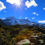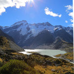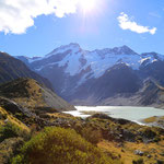 die Landschaft zu bewundern. Ich fühle mich wie ein kleiner Hobbit in dieser atemberaubenden Natur. Am Aoraki Mount Cook wandere ich ein bisschen im Hooker Valley. Was für ein schöner Tag!