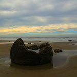 Dunedin, einem Städchen mit schottischem Charme, lasse ich die Mädels raus und düse alleine weiter. Schon kurze Zeit später fehlen sie mir - wie leise es wieder ist. Vorbei an den Moeraki