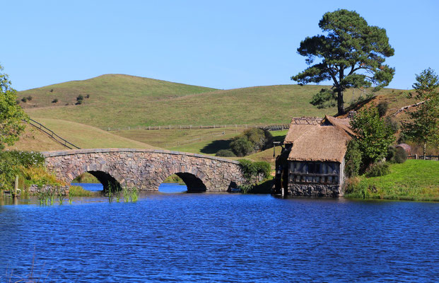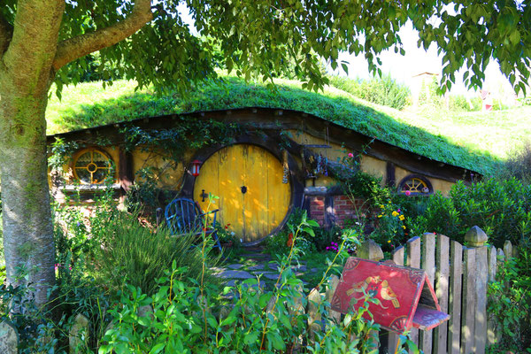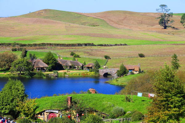 Es geht nach Matamata und unweit davon liegt es, das Auenland. Im modernen Fachjargon wird Frodos Heimat Hobbiton genannt, aber ursprünglich heißt es Hobbingen. Da horche ich natürlich als Historikerin auf … hm, sind wir etwa verwandt mit den Hobbits? Denn alle Dörfer, die mit –ingen enden – Tübingen, Reutlingen, Engstingen natürlich - gehen auf die Alemanen zurück … auch Hobbingen?