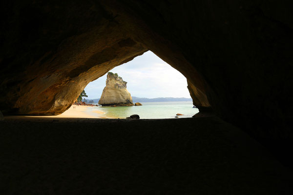 Weiter geht es Richtung Norden nach Coromandel. Die Halbinsel wurde mir wärmstens ans Herz gelegt. Lange Sandstrände kombiniert mit schönem Wetter – einfach herrlich! Ein Muss: Eine kleine Wanderung zur Cathedral Cove – einer kleinen „Höhle“ am Meer. Im Hostel trifft man auf nette Leute, so spielt man gemeinsam das neuseeländische Monopoly. Jaaaa, ich wollte schon immer mal Besitzerin des Milford Sounds sein.