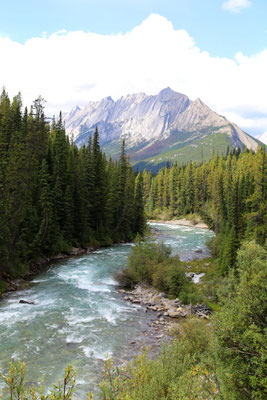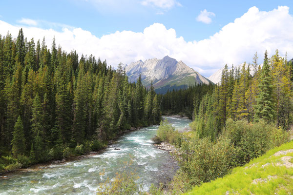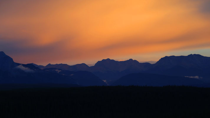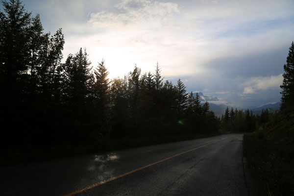 Eigentlich wollten wir heute Morgen schon um 5.00 Uhr starten, jedoch wegen Müdigkeitsanfällen verschieben wir unsere Abfahrt um zwei Stunden nach hinten. Kurz nach Abfahrt sehen wir am Highway 1 unseren ersten Braunbären. Das Vergnügen wehrt jedoch nur kurz. Es geht weiter über den berüchtigten Icefield Parkway. Man hört, dass es eine der schönsten Straßen der Welt sein soll. Etwas mehr als vier Stunden beträgt die reine Fahrzeit und da wir Pech mit dem Wetter haben - Nebel, Nebel und Nebel, brettern wir die Straße durch und sagen uns: Wir kommen wieder!
