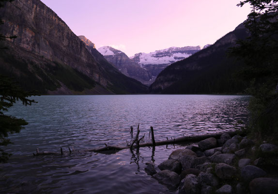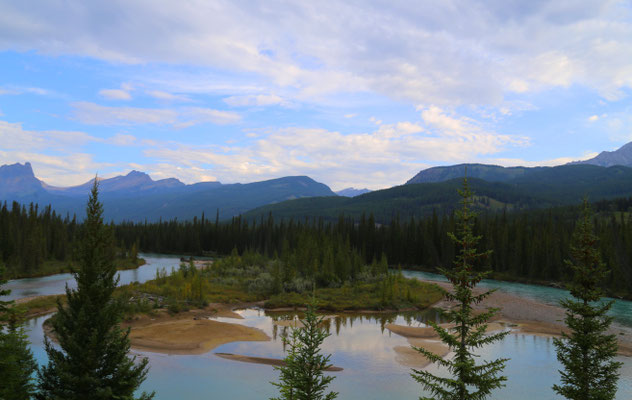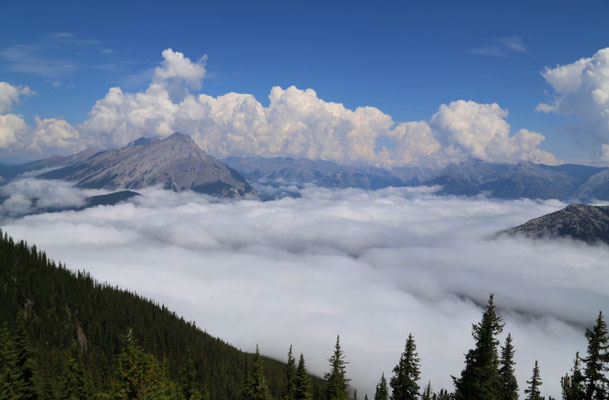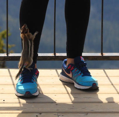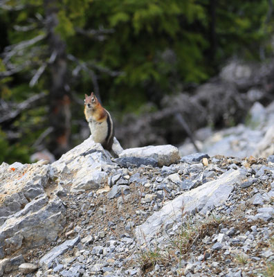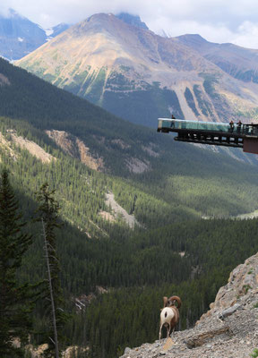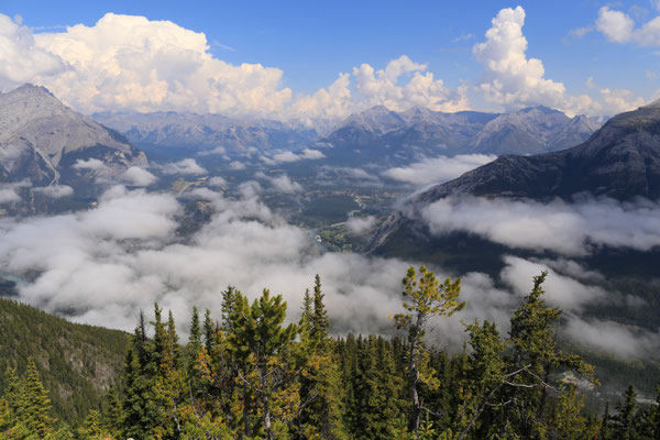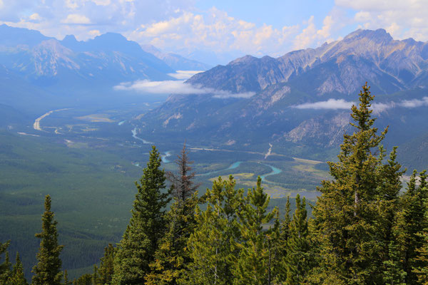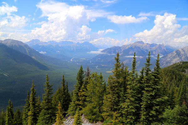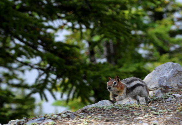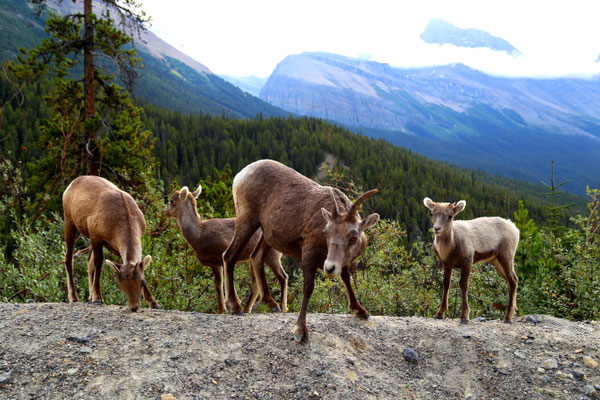 Nach anderthalb Stunden erreichen wir den Banff-Nationalpark. Der erste Blick auf die Rocky Mountains ist gigantisch. Zuerst statten wir dem Lake Louise und dem Lake Moraine einen Besuch ab. Wahnsinn was hier los ist! So beschließen wir am nächsten Tag, es ruhiger angehen zu lassen und besuchen den angrenzenden Yoho Nationalpark mit Takakkaw Falls und Emerald Lake. Am Morgen des dritten Tages ist es lange nebelig, jedoch entschließen wir uns, dass es heute hoch hinauf gehen soll: Auf dem Gipfel des Sulphur Mountain angekommen, klart es auf und die Aussicht verschlägt uns den Atem. Eine kleine Abwechslung bieten uns die unzählige Chipmunks, die um uns herumflitzen.