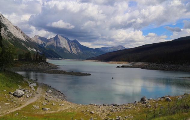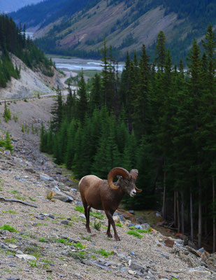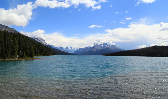 Die Unterkunft für die nächsten zwei Übernachtungen wird eine Ranch - The black cat ranch - in der kilometerweiten Einsamkeit werden. Schon die Fahrt dorthin ist spektakulär. Landschaftlich ist es traumhaft. Über eine kleine Schotterpiste geht es zunächst durch den Wald, danach ist ein kleiner Bach zu überqueren und schon ist man da - Idylle pur! Vor unserer Terrasse traben sieben Pferde, am Waldrand kann man Rehe beobachten und nicht zu übersehen sind die Rockies direkt vor uns. Das ältere Ehepaar führt diese Ranch mit voller Hingabe. Den kompletten nächsten Tag verbringen wir im benachbarten Maligne Valley. Die Fotos sprechen für sich :)