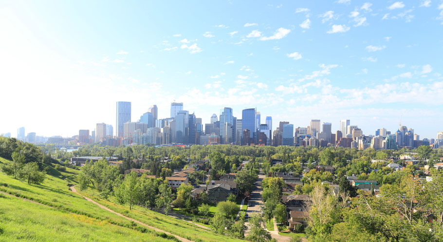 Der erste Schock ließ nicht lange auf sich warten ... Das erste B&B (Centre Street) entpuppte sich als blankes Horrorhaus. Eine kleine Zettelbotschaft war der einzige Willkommensgruß. Da der Schlüsselcode nicht funktionierte, stiegen wir durch die Hintertüre ein und befanden uns Mitten in der dreckigsten Unterkunft meines Lebens. Unser Zimmer lag im Keller, hatte keine abschließbare Türe und miefte. Nachdem ich das dreckige Kellerfenster mit brachialer Gewalt öffnete, strömten Maden, Kellerasseln und allerlei anderes Ungeziefer herein. Das war der Moment, in dem wir beschlossen, eine andere Unterkunft zu suchen ... Völlig übermüdet fanden wir uns im Flughafenmotel wieder. Am nächsten Morgen riet uns das Hotelpersonal, nicht im Hotel zu frühstücken - Häää? Wir wollten nur noch weg, raus aus Calgary und rein in die wunderbare Wildnis Kanadas. Jedoch hielt es uns länger in der Stadt als wir es wollten. Es sollte nur noch schnell ein letztes Skyline-Foto geben, als Christines Kamera den Geist aufgab. Auf der Suche nach einem Fotofachgeschäft liefen wir einem Schweizer Fotografen, der vor Jahren auswanderte, in die die Arme. Diagnose: Fotogehäuse kaputt - Maßnahme: Neukauf eines Canon-Bodys - kurz anhaltender Trauerzustand! Walter, der Fotograf lud uns zu sich nach Hause zum Kaffee ein. Gemeinsam mit ihm und seiner Frau verbrachten wir eine schöne Zeit auf deren Terasse. So nahm unsere Zeit in Calgary doch noch ein gutes Ende.