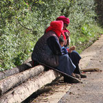 der prompt in einem Schlammloch stecken bleibt. Alle steigen aus und helfen schieben - was für ein Spaß. Das letzte Stück geht es zu Fuß. Ein nett-lächelnder Tibeter bietet mir an, ich könne mit