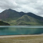 dass man alle paar Schritte eine Pause machen möchte. Auf dem Weg über Tsedang nach Gyantse überwindet man den 4794 Meter hohen Kamba-Pass, hinter dem sich der lichtblaue Yamdrok-See