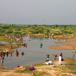 Abenteuerliche Zugfahrten: Es ist meiner Meinung nach ein Muss in Indien Zug zu fahren. Das Abenteuer beginnt beim Kauf einer Fahrkarte. Als Frau ist das viel erschwerlicher. Nach 30 Minuten bin ich tatsächlich soweit, einem mir fremden Inder mit dem Ellenbogen voll in die Seite zu schlagen; nicht vorbildlich, aber sonst würde ich heute noch da stehen. Nach dem dritten Bahnhof, welche sich in Indien alle ähneln, habe ich mir angewöhnt, mein Gepäck zu umklammern und meine Augen zu schließen. Hier bleiben Bilder im Kopf, die niemand sehen möchte. Ich fahre zweiter Klasse, dennoch sind die Züge überfüllt. Viele fahren ohne Sitzplatzkarte. Nicht selten passiert es, dass mir zwei Inder auf dem Schoß sitzen. Da hilft nur: wegdrücken. Zwei Nächte wählte ich in der zweiten Klasse einen Schlafwaagen. Türen gibt es nicht, nur zerschlissene Vorhänge. Es ist stickig, eng und fremd. Geschlafen wird auf Pritschen, welche an der Wand befestigt sind. Es gelingt mir tatsächlich, trotz schnarchendem Inder neben mir, ein bisschen zu schlafen. Ja, ich höre schon einige Freunde sagen: "Klar Simone, du kannst doch überall schlafen. Ob in einer wildfremden Großstadt im Taxi oder in einem vollgestopften Bus, ..." Dennoch ist es mir noch nie so schwer gefallen, einzuschlafen. Morgens wird man mit "Tea, Miss?" geweckt und man freut sich, dass man es bald geschafft hat...