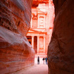 Am letzten Tag des Jahres geht es weiter nach Petra. Die antike Felsenstadt ist Weltkulturerbe und eines der neuen sieben Weltwunder. Bei Dunkelheit wandert man durch den Siq - überall stehen Kerzen. Gänsehautfeeling breitet sich schon aus, sobald man die erste Schritte in die tiefe Schlucht getan hat. Am Ende angekommen, gibt es einen dramatischen Blick auf das Schatzhaus frei. Magisch!