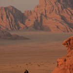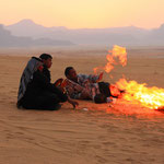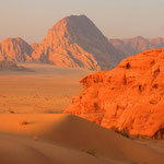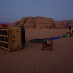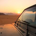 Mit dem Allrad in die Wadi-Rum-Wüste. Dort erlebt man ein tolles Farbenspiel. Leider funktioniert das Auto nicht mehr richtig. Doch nach fachkundiger Hilfe von Arabern und einem Gebet fährt