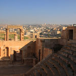 Von Stuttgart aus geht es über Istanbul nach Amman, der Hauptstadt Jordaniens. Praktisch, im Hotelzimmer klebt ein Hinweis an der Decke, wo sich Mekka befindet. Absolut praktisch! Am Stadtrand liegt Jerash, ein historisches, römisches Städtchen. Vom östlichen Tor aus sind es nur wenige Kilometer bis Syrien. Ein kurzer Zwischenstopp wird am Toten Meer eingelegt. Der heilige Berg Nebo wird bestiegen, oben erhascht man einen Blick auf Israel.